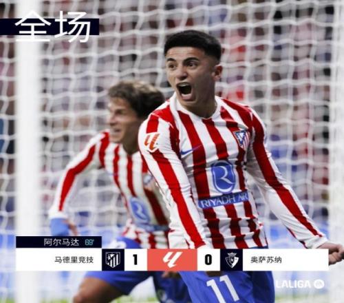 阿尔马达替补制胜,马竞1比0进前四 西甲 10-19 07:49 西甲第9轮,马竞主场1比0小胜奥萨苏纳,排名升至第4位。第9分钟,阿尔瓦雷斯销魂直塞助攻巴埃纳首开纪录,但主裁判观看回放后判定格列兹曼阻挡后卫犯规(图②),进球无效。第63分钟阿尔马达复出换下巴埃纳;第69分钟,朱利亚诺·西蒙尼右路突破下底传中,阿尔马达门前包抄打入全场唯一进球(图③)。 |