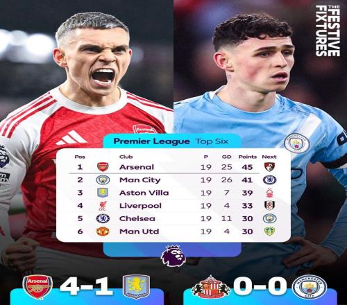 早报曼城平桑德兰,阿森纳4分优势领跑英超积分榜!