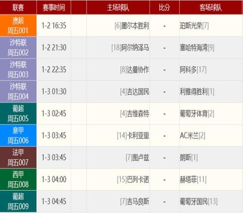 英超 桑德兰 0-0 曼彻斯特城 北京时间1月2日04:00,英超联赛第19轮,桑德兰坐镇主场光明球场迎战曼城。上半场,B席进球被吹,布罗比、哈兰德失良机。易边再战,萨维尼奥两失良机,格瓦迪奥尔中柱。最终桑德兰0-0曼城。积分榜方面,桑德兰29分第七,曼城41分第二落后阿森纳4分。 英超 利物浦 0-0 利兹联 北京时间1月2日01:30,英超联赛第19轮,利物浦主场迎战利兹联。上半场阿利松失误险送礼,埃基蒂克头球失空门,半场结束,利物浦0-0利兹联。下半场范戴克头球造险,维尔茨屡失良机,勒温破门无效,最终利物浦0-0利兹联,联赛3连胜终结。 英超 布伦特福德 0-0 托特纳姆热刺 北京时间1月2日04:00,英超联赛第19轮,热刺客场挑战布伦特福德。上半场双方均无建树,沙德打进一球,但是越位在先。热刺半场0-0战平布伦特福德。下半场两队也没有进球,维卡里奥作出一次关键扑救。最终热刺0-0战平布伦特福德,热刺近4轮仅取得1场胜利。 英超积分榜:阿森纳4分优势领跑 01月02报道 英超第19轮比赛全部战罢,曼城0-0桑德兰,阿森纳4-1战胜维拉。阿森纳领先优势扩大到4分。 其他赛事比分: 英超 水晶宫 1-1 富勒姆 澳超 奥克兰FC 1-3 纽卡斯尔喷气机 澳超 西悉尼流浪者 0-1 麦克阿瑟FC 英冠 布莱克本 0-2 雷克瑟姆 英冠 布里斯托城 5-0 朴茨茅斯 英冠 查尔顿 1-1 考文垂 英冠 德比郡 1-0 米德尔斯堡 英冠 赫尔城 0-1 斯托克城 英冠 伊普斯维奇 2-1 牛津联队 英冠 普雷斯顿 3-0 谢周三 英冠 女王公园巡游者 1-2 诺维奇 英冠 南安普敦 0-0 米尔沃尔 英冠 沃特福德 3-0 伯明翰 英冠 斯旺西 1-0 西布罗姆维奇 英冠 谢菲尔德联队 3-1 莱斯特城 赛事前瞻敬请留意 |