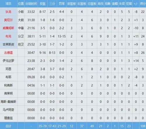雷霆三分球32中10,命中率只有约31%,投篮向来是他们的最大软肋,数据如下: