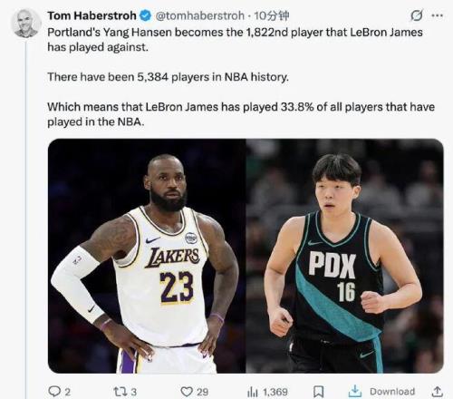 【开拓者112-108国王】 上场打湖人,杨瀚森最后3分钟获得了上场机会,NBA职业生涯第一次对阵詹姆斯,然后他成为了 詹姆斯生涯对阵过的第1822名对手。 NBA历史上共有 5384 名球员,詹姆斯生涯对阵过1822名对手,占比33.8%,不愧是最长的河。 嗯,NBA真的什么破数据都有。 今天打国王,杨瀚森第一节还有7分钟就轮换上场 表现嘛,不能说差强人意,只能说还是老样子 打个G联赛从从容容,游刃有余,打回NBA,马上就跌跌撞撞了 篮下防守拉文犯规 内线强打勾手被帽出界 太难了! 还好,我们还是能看到小杨有在进步 篮下抛投完成今天的得分任务 抢断后策动快攻妙传队友上篮得分 半场出战7分29秒, 2投1中,拿到2分1板1助1断1帽 你说可圈可点吧,有但不多 你说多给机会吧,又怕他抓不住 第三节,小杨重新获得上场机会 结果…… 进攻掩护被吹犯规 补防被小萨博尼斯单臂隔扣 下个回合进攻又被吹走步违例 不吹不黑,先不讨论裁判的哨子是否离谱,杨瀚森在NBA真的挺难的。球迷甚至觉得杨瀚森继续这么打,快要进入NBA的斩杀线了。 目前,杨瀚森在NBA打了24场,场均出战8.7分钟,场均2.5分1.7板0.8助,命中率29.9%,3分命中率15.6%,确实是还挺让人担心的。 当然,不止杨瀚森,所有新秀刚进NBA,都会面临着各种看似不合理不公平的待遇以及超高强度的挑战,喋喋不休寻找客观原因没用,唯有提升自身实力才是硬道理。 比如小萨博尼斯在NBA新秀赛季,打了81场首发66场,场均出战20.1分钟,仅得5.9分3.6板1.0助,命中率40%,3分命中率32%。 第二年被交易到步行者后,立马就打出来了,在NBA站稳了脚跟。 小杨啊,努力再努力,提高再提高吧,用实力让人无话可说,尽快走出NBA斩杀线。 【火箭119-110鹈鹕】 火箭终于又从粪坑里爬上来了 3连败的时候,大哥气得当场怒砸水瓶,吓得一旁的阿杜、小贾、谢泼德不敢吱声。 还好,大哥这一怒,终于砸醒了火箭年轻人的心气 火箭之后3胜1负,终于从第6艰难超越湖人升回第5 不知道你们有没有感觉,阿杜在火箭打得一点都不轻松,最近4场,他场均出战38.2分钟,队内最高。除了勇士,阿杜去到哪,哪都离不开他。 上场打森林狼,阿杜18投11中,3分8投6中,39分4板7助2断血C火箭 今天打鹈鹕,阿杜18投5中,3分8投1中,18分6板8助滥宇充数缓了一口气。 值得一提的是,今天是大哥的里程碑。 生涯总得分 31562分,正式超越诺维茨基(31560分),荣升NBA历史得分榜第六! 这是阿杜追平老司机的2分 用诺维茨基的金鸡独立追平了诺维茨基 大哥的金鸡独立致敬老司机金鸡独立! 你说不是故意的,谁信呐? 很快啊,诺维茨基亲自发来视频贺电: “我并不是非常开心,他超越了我哈哈,开玩笑的。对我来说,他是我所见过的最纯粹、最丝滑的得分手之一。恭喜你杜兰特,继续前进吧,再上升几位。祝你好运。” 曾经,排在诺维茨基上面的是最高的山乔丹 所以,下一个轮到你了,老流氓…… 【魔术109-126灰熊】 时隔半个月,莫兰特终于复出了 鸟枪换炮,战争之王带着火箭筒回来了